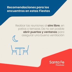COVID 19 PROVINCIALES EL GOBIERNO DE SANTA FE RECOMIENDA PARA PARA ESTAS FIESTAS 5 años atrás El gobierno de la provincia recomienda para estas fiestas: Comparte nuestras noticias ! Navegación de entradas Anterior Coronavirus – 6 PACIENTES EN ESTADO CRITICOSiguiente Coronavirus – ARGENTINA CIERRA SUS FRONTERAS HASTA EL 9 DE ENERO Más historias COVID 19 REGIONALES CORONAVIRUS – 141 nuevos casos y un solo fallecido en la región 5 años atrás LOCALES PROVINCIALES VUELVEN LAS CLASES EN NIVEL INICIAL y PRIMARIO EN MODALIDAD PRESENCIALES EN MUCHISIMAS CIUDADES… EN RECONQUISTA NO 5 años atrás COVID 19 LOCALES Reconquista – COMENZARON LOS HISOPADOS GRATUITOS 5 años atrás